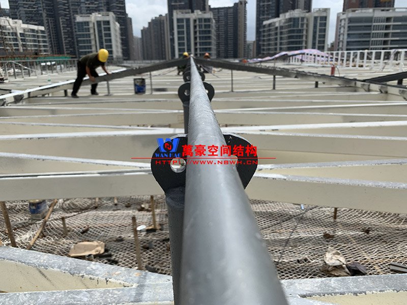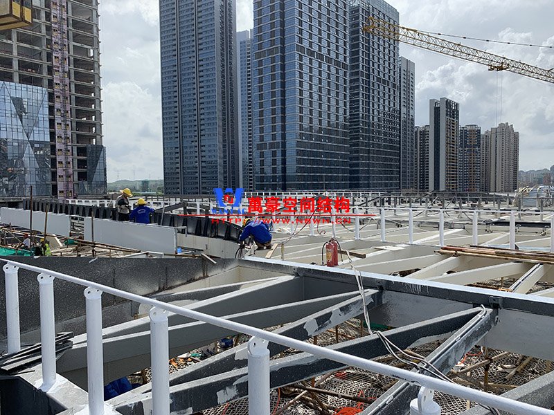 紅山六九七九商業(yè)中心項(xiàng)目幕墻工程Ⅱ標(biāo)段膜結(jié)構(gòu)鋼結(jié)構(gòu)工程位于廣東省深圳市龍華區(qū),此工程用鋼量300噸,膜結(jié)構(gòu)展開面積5000平米,由寧波萬豪空間結(jié)構(gòu)工程有限公司承建。