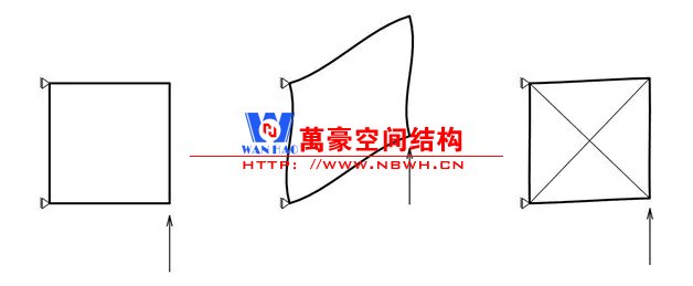提高平面內剛度的直接方式是采用三角形網格。富勒發明了短線呈穹頂,并應用于1967年蒙特利爾國際博覽會上的美國館——一座直徑為76m的3/4球形建筑。