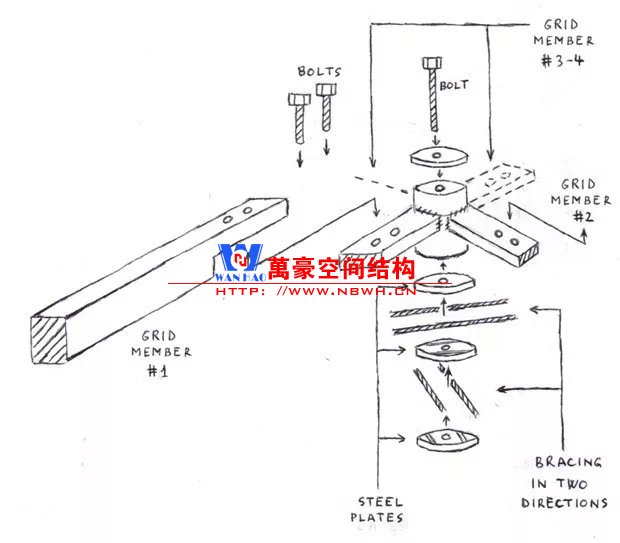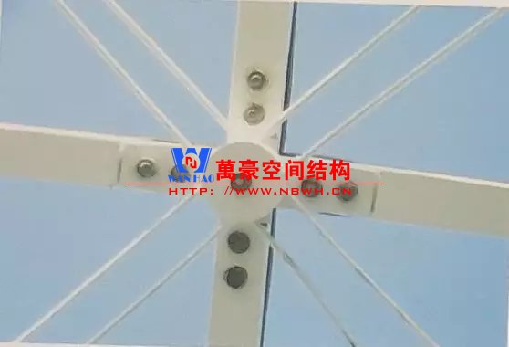 為了運輸和安裝的方便,所有的桿件被設計成了1m的標準長度,在節點處由螺栓連接。