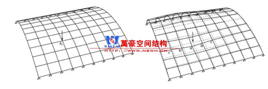 網殼受力方式為薄膜作用,屬于拱結構向三維的拓展;因此,與拱類似的問題會出現在網殼上。比如:整體穩定問題;不對稱荷載敏感等。