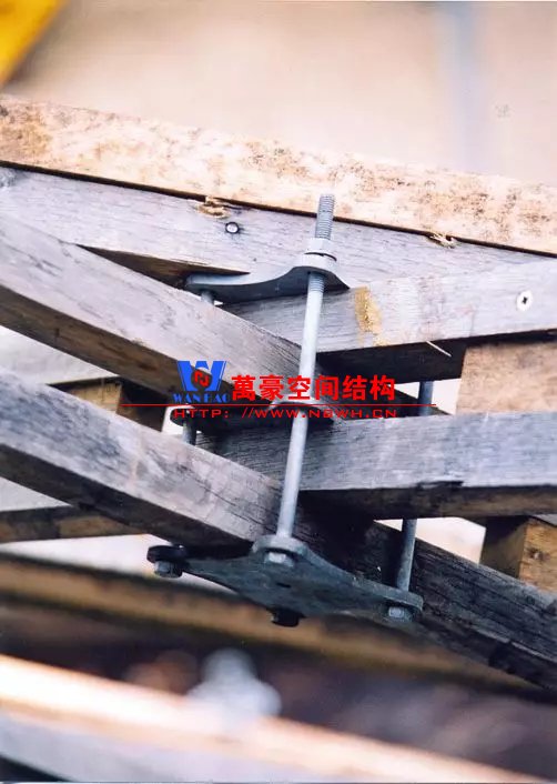 工程師設計了一種用金屬絲綁扎的方式。這種連接方式使構件都能貫通,大大簡化節點構造、節省了組裝成本。