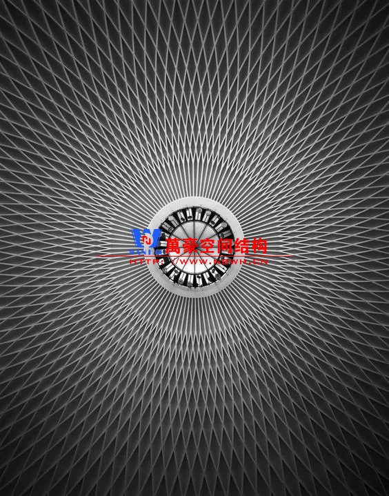 還是用鋼結構比較穩妥。要用鋼結構表現天窗的輕盈,網殼是一個很好的選擇。經典的網殼劃分方法有很多,比如肋環型、聯方型、施威德勒型、凱威特型等等。其中肋環型適合中、小跨度;聯方型抗風抗震性能相對更好,適用與大、中跨度;施威德勒型能承受較大的非對稱荷載,適用于大、中跨度;凱威特型為均勻的三角形網格,適用于各種跨度。