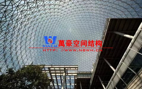 但是由于焊接會造成鋁合金強度大幅下降,鋁合金通常采用圓盤連接節點。而圓盤節點抗剪性能差,不適合用在以受彎為主的梁式結構。殼體結構內以壓應力為主,構件設計均為穩定控制,對節點需求低。因此,鋁合金結構特別適合用于受壓為主的球殼結構。