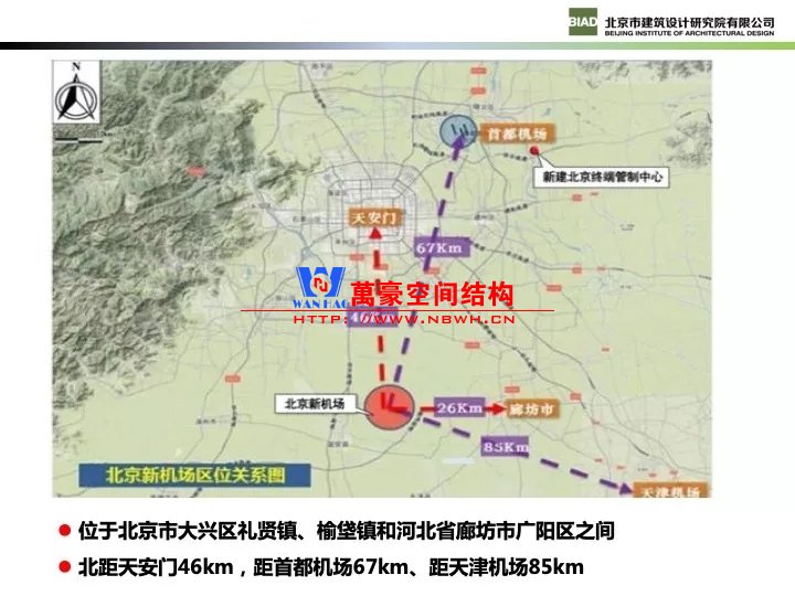 北京大興國際機場(Beijing Daxing International Airport,IATA:PKX,ICAO:ZBAD),位于中國北京市大興區及河北省廊坊市廣陽區之間,距首都機場67千米;定位為大型國際航空樞紐、國家發展一個新的動力源、支撐雄安新區建設的京津冀區域綜合交通樞紐。