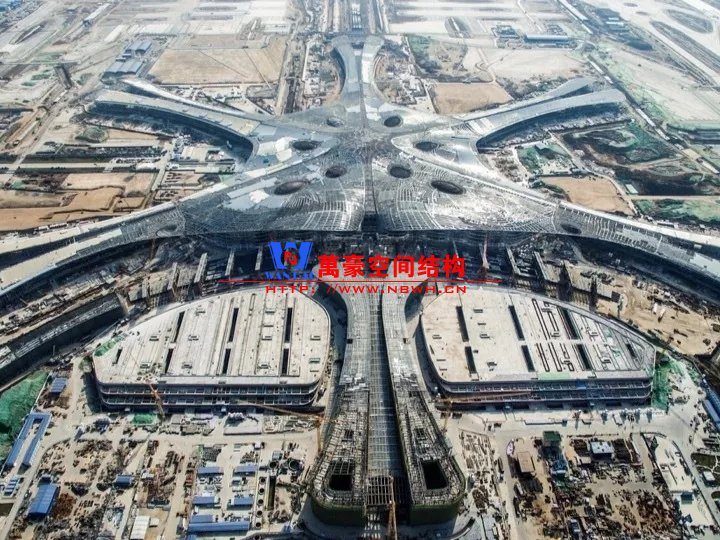 北京大興國際機場于2014年12月開始動工,于2015年9月全面開工,時名“北京新機場”。2018年9月,機場定名為“北京大興國際機場”。2019年9月25日,機場正式投運。北京大興國際機場航站樓綜合體建筑140萬平方米,可停靠飛機的指廊展開長度超過4000米。機場規劃四縱兩橫6條民用跑道,本期建設三縱一橫四條跑道、268個停機位。機場建成了“五縱兩橫”的交通網絡,1小時通達京津冀。