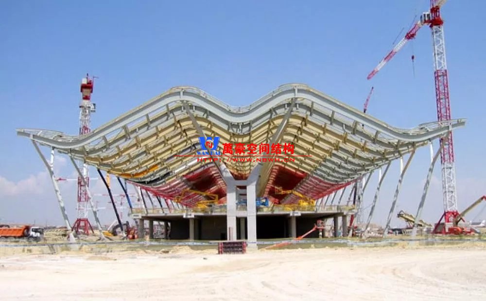 除了以上相對比較常見的結構類型,還有一些是不太常見的樣式,且基本上只此一例別無他家。如丹佛機場則采用了膜結構,潔白的膜層層疊疊與遠處的雪山交相呼應,建筑效果很特別。那為何很少有機場大范圍采用膜結構呢?可能和膜結構的熱工性能和使用年限有關系,夏熱冬冷不節能。同時膜結構對形態的適應性比較差,需要特定的建筑樣式才能遷就膜結構,而不像鋼結構基本能適應任何建筑造型。因此建筑師如果想選擇膜結構,需要和結構工程師在早期有更多的溝通。