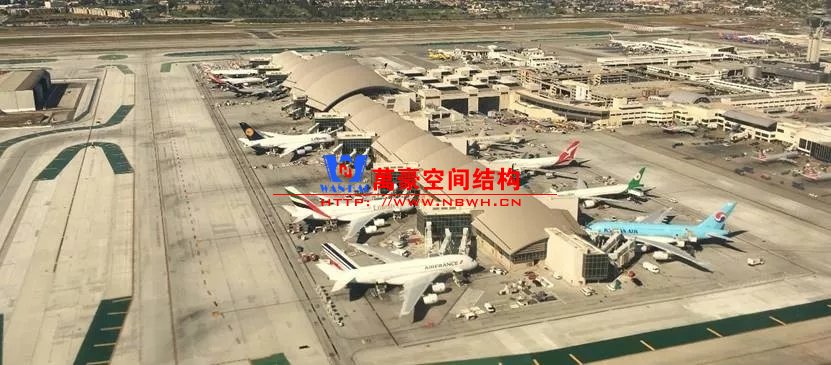 除了頂窗,建筑有時還希望布置側窗,如洛杉磯機場。建筑師將指廊沿長方向分割成數個分塊,將每個分塊一側抬起首尾相連,在首尾相接處即形成了側窗。結構設計時需要貼合建筑造型做成折梁,且每一榀的弧度都不一樣。相比與前面兼顧建筑造型和結構受力的案例來說,結構犧牲了整體性導致截面做得比較大,因此室內建筑效果并不通透且有些亂。