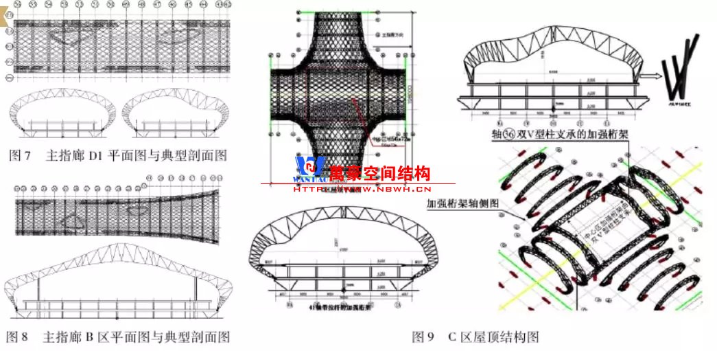 當然也可以用萬能的桁架和網架去擬合筒形的曲面,但建筑的不同處理方法,會讓最終效果呈現出完全不同的感覺。如深圳寶安機場采用桁架+網架的結構體系貼合建筑的上下表皮,最終建筑做吊頂外包,建筑吊頂采用鏤空的形式表達出建筑紋理,但在縫隙中可以看到結構構件。