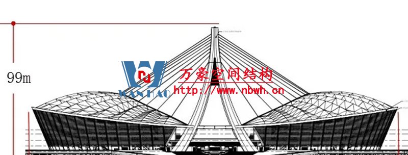 索桁架猶如一把“大傘”自重輕、剛度大,斜拉索與兩座人字形吊塔猶如兩把空中“豎琴”,可實(shí)現(xiàn)更大跨度。“大傘+豎琴”的結(jié)構(gòu)組合代表著當(dāng)今世界空間結(jié)構(gòu)技術(shù)發(fā)展的最高水平,同時(shí)也是項(xiàng)目的最大難點(diǎn)所在。