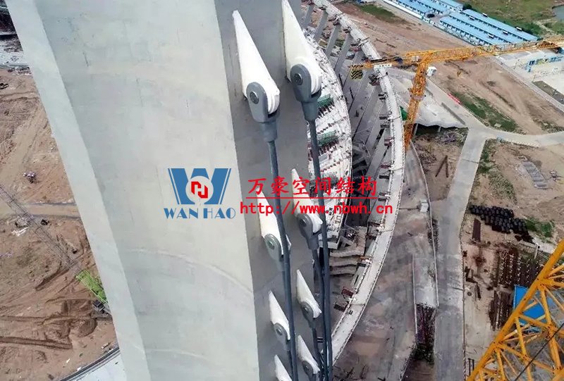 3、因?yàn)樾崩鞯拇嬖冢瑢?dǎo)致環(huán)索連接節(jié)點(diǎn)處平衡力過大,對(duì)索夾、撐桿、螺桿等構(gòu)件要求非常高。