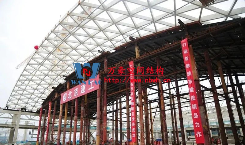 6月29日上午9時,由北京機施承建的國家會議中心二期工程會展區鋼結構屋面網殼開始滑移安裝,這也標志著距離該工程主體結構全面封頂又邁近了一步。