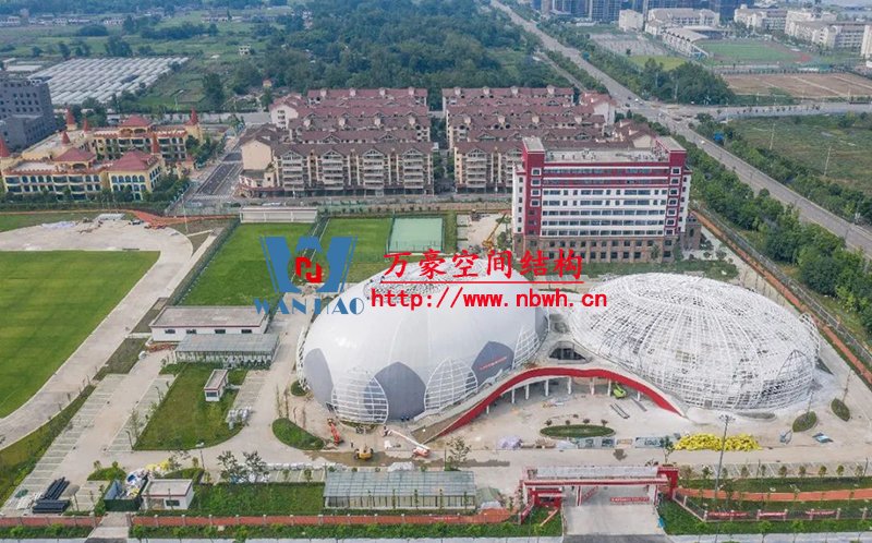 目前訓練中心主體結構已修建完成,屋蓋系統膜結構、室內裝潢正在同步施工。
