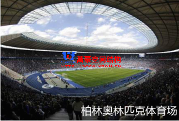 柏林奧林匹克體育場中屋頂設(shè)計屬于絕對高水平的設(shè)計,懸挑的鋼結(jié)構(gòu)和張拉膜的使用,使頂棚顯得尤為輕質(zhì)。