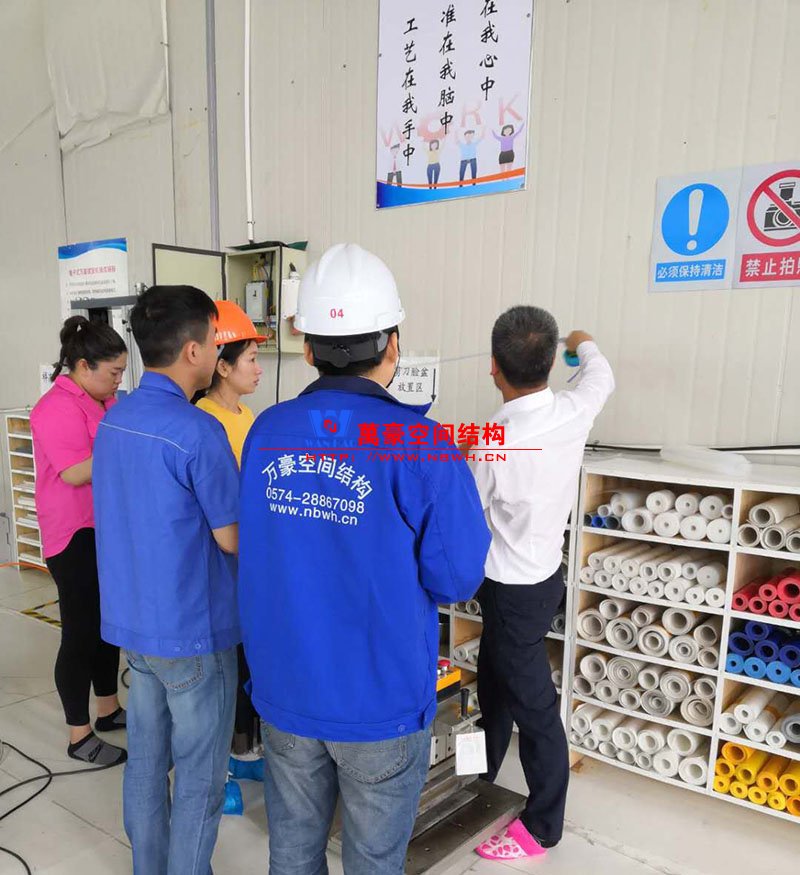 2019年6月2日,萬豪空間結構總經理張總在萬豪工廠對車間生產管理進行了視察指導工作。