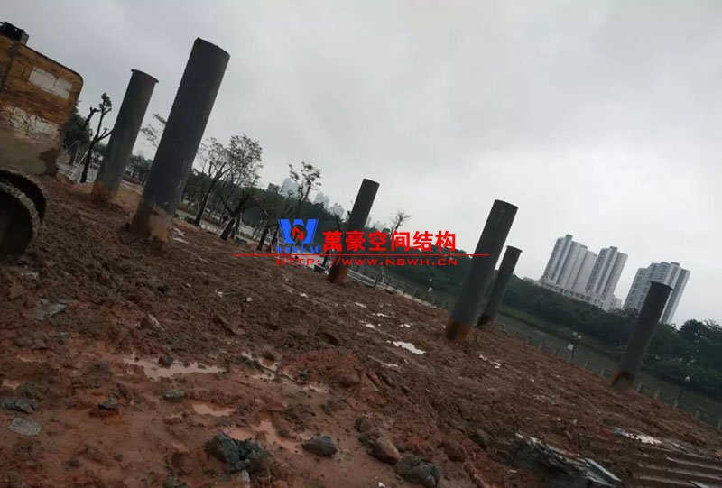 鋼構安裝初步完成,效果初現,膜結構開始安裝。