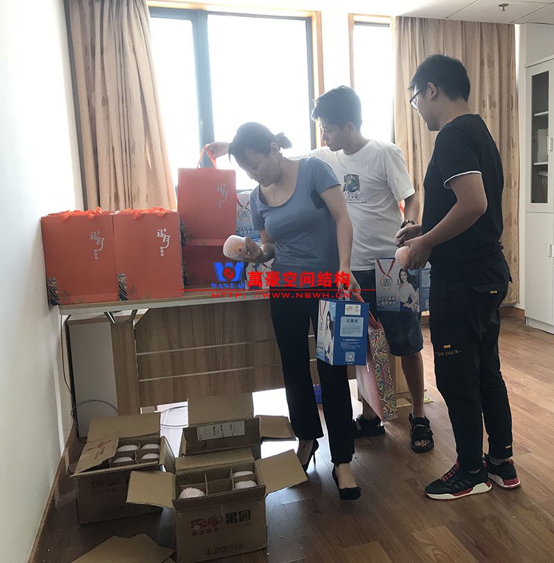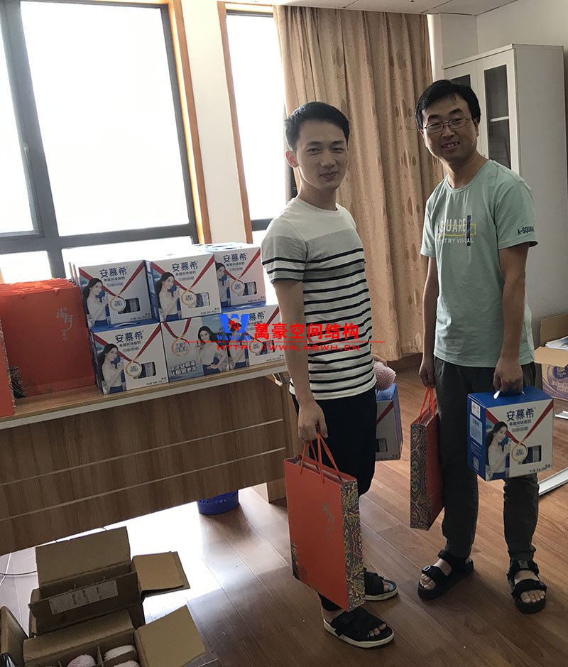 我們?nèi)f豪空間結(jié)構(gòu)中秋的福利是一盒精致的月餅禮盒,外加一箱安慕希酸奶和大蘋(píng)果哦。你們中秋節(jié)都發(fā)什么了呢?