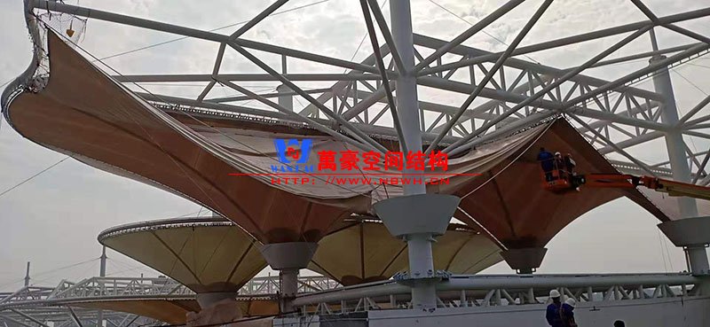 ?目前云朵12356鋼結構及油漆完工;云朵二膜施工完成;云朵一膜施工八片;云朵三膜施工四片。 期待工程早日完工,為萬豪再添輝煌。