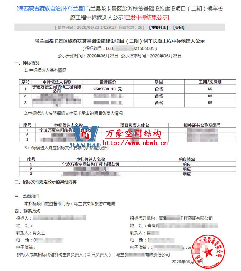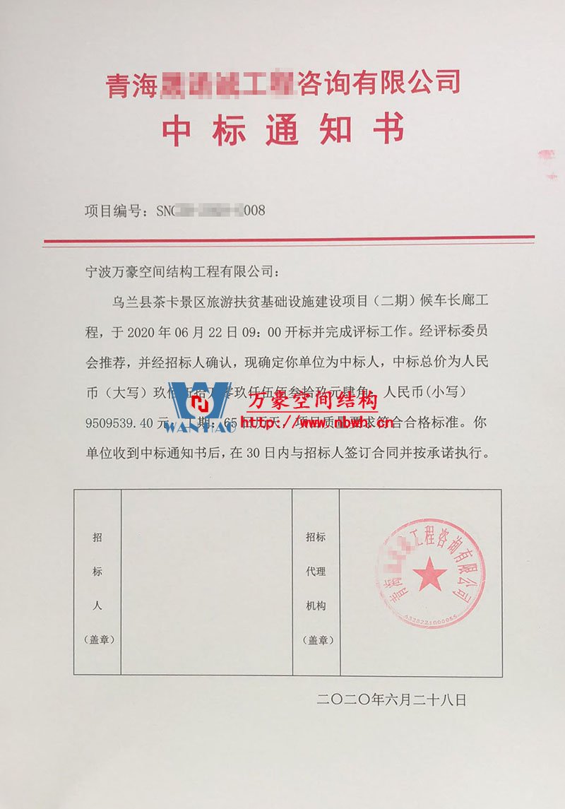 喜訊?。?! 祝賀我司中標烏蘭縣茶卡景區旅游扶貧基礎設施項目(二期)膜結構工程。 該項目位于青海省海西蒙古族藏族自治州烏蘭縣茶卡景區,工程用鋼量200噸,膜結構展開面積6000平米,建成后將成為當地另一地標性建筑。 這是萬豪2020年的第8標,萬豪定當再接再厲,完美完成此次工程,大家拭目以待。