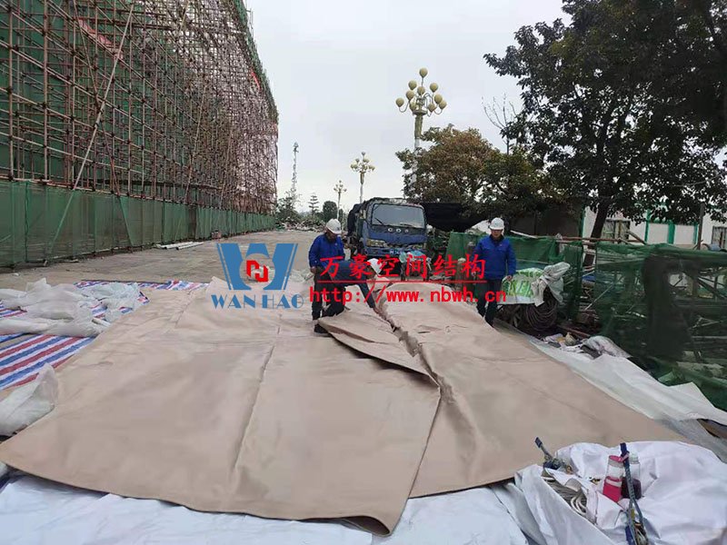 汕尾市體育中心(一期)工程田徑場膜結構項目位于廣東省汕尾市,PTFE膜結構展開面積5000平米,由寧波萬豪空間結構工程有限公司承建。 目前,該項目的鋼結構工程部分已完成,進入膜結構安裝階段。 期待整個工程的完工,來領略它別致的風采。