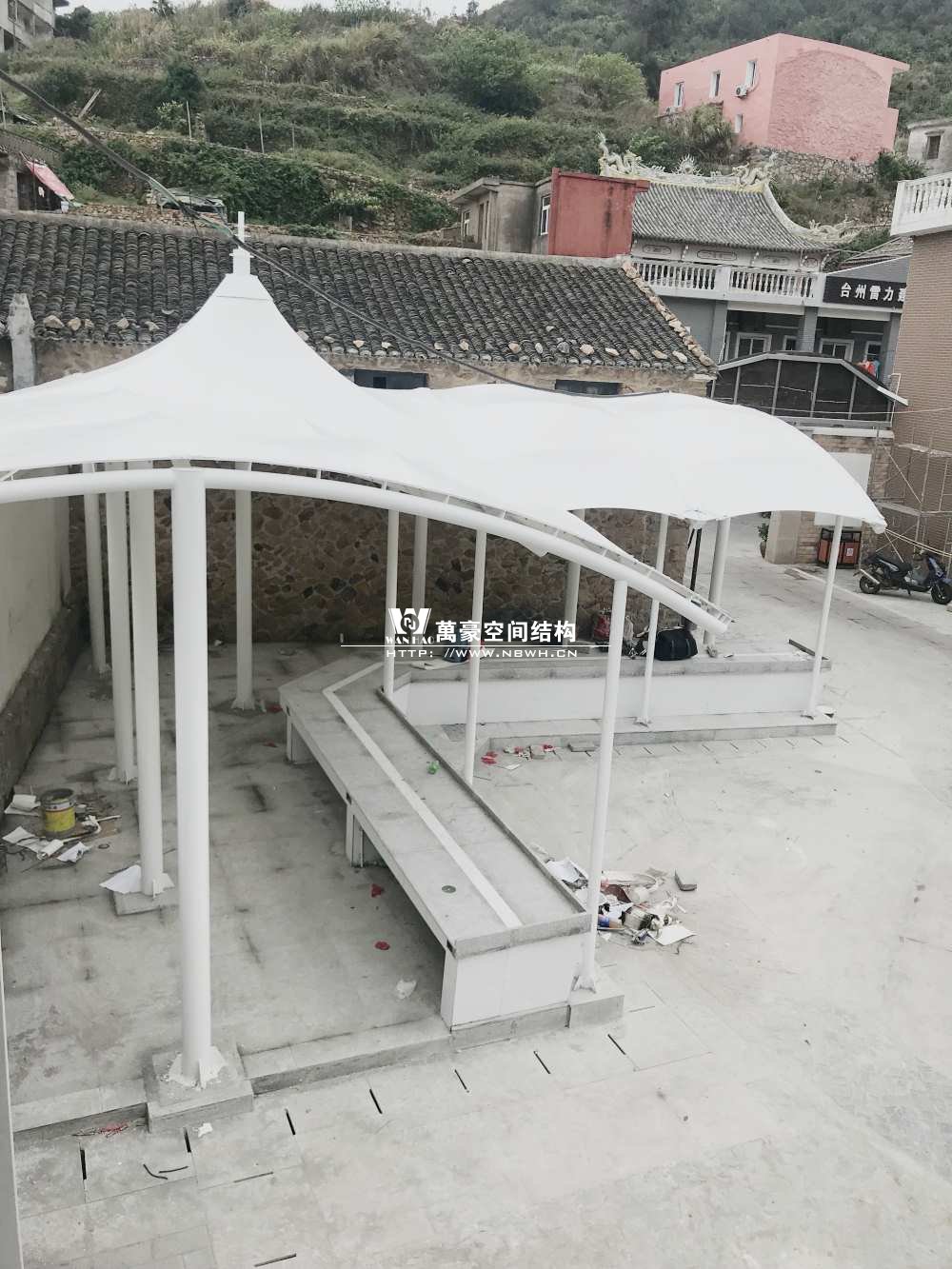 大陳島海鮮膜結構工程位于下大陳島衛(wèi)星村步行街后半段(臺州雷力建設有限公司對面),該工程由我司現(xiàn)場考察、多次深化、制作及安裝,設計抗臺等級12級,鋼構最高點高度達6.5米;