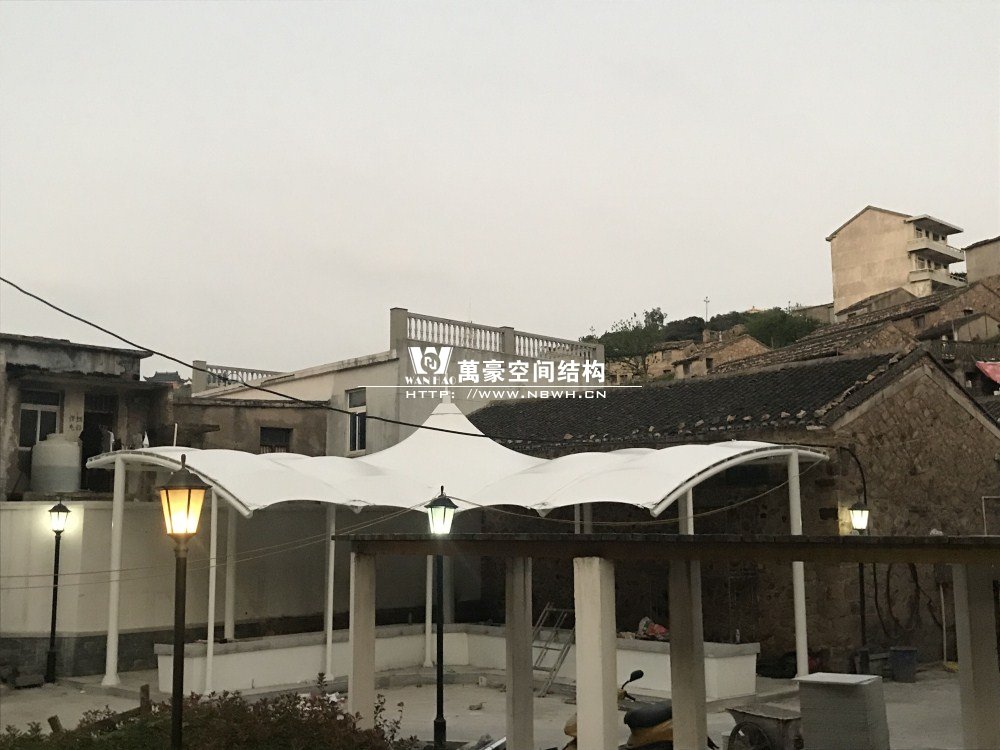 該膜結構造型新穎,空間立體感效果極佳且與周圍環(huán)境融為一體,此項工程如期完成且受到臺州椒江區(qū)人民政府和游客們的一致好評。