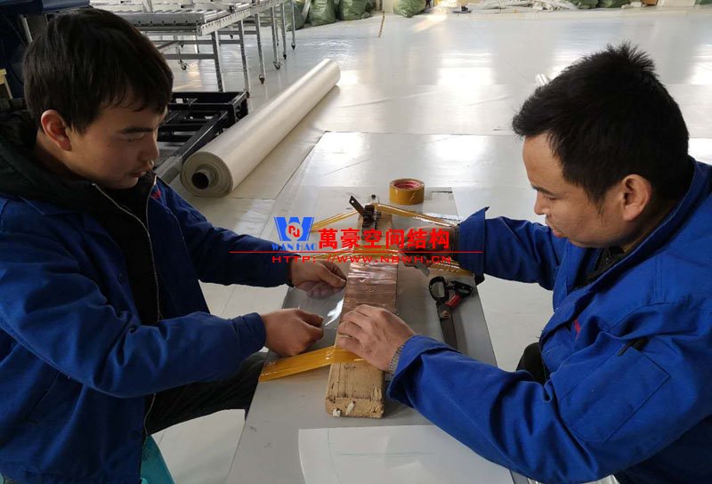 近日,萬豪接了一個ETFE膜結(jié)構(gòu)車棚加工項(xiàng)目,那就是廣安公交車棚項(xiàng)目。這個項(xiàng)目的鋼結(jié)構(gòu)加工以及膜結(jié)構(gòu)加工都是在萬豪工廠內(nèi)完成。